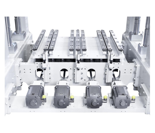 Система может гибко адаптироваться к различным производственным потребностям конкретных изделий. ● Восемь вибрационных блоков с механической балансировкой, индивидуально настраиваемой восемью сервоприводами. ● Восемь валов двигателя с эластичными муфтами. ● Восемь серводвигателей, каждый из которых установлен на внешней виброизоляционной перекладине на раме двигателя. ● Вибростол не требует масляной ванны (экологически чистый).