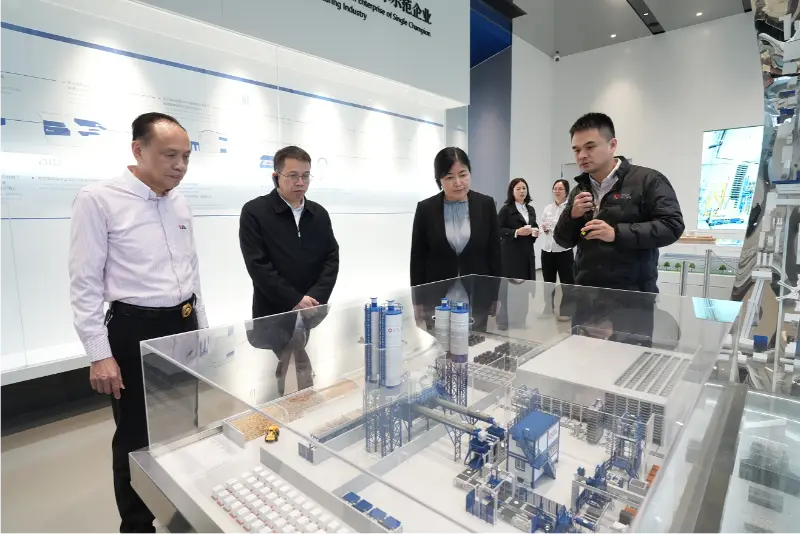 В зоне демонстрации образцов кирпича г-н Лю Минь и его делегация рассмотрели различные экологически чистые и практичные образцы кирпича, слушая презентации, посвященные процессам производства продукции и сценариям применения. Они высоко оценили приверженность компании Quangong Machinery Co., Ltd. к «зеленому» развитию и ее инициативы по содействию ресурсосберегающему использованию твердых отходов, поощряя компанию разрабатывать еще больше продуктов, которые соответствуют как государственной политике, так и требованиям рынка.