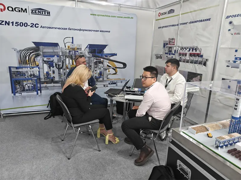 Во время выставки локализованная маркетинговая команда QGM в России предоставила профессиональные консультационные услуги по продукции и успешный анализ конкретных случаев клиентам отрасли, пришедшим на стенд, продемонстрировав глубокую техническую мощь и богатый практический опыт QGM в бетонной промышленности. В то же время, в процессе контакта, маркетинговая команда QGM также рассказала о развитии кирпичной промышленности, тенденциях рынка и успешном опыте посещения клиентов отрасли.