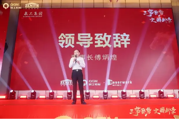 После многих лет глубокого накопления технологий и управленческого опыта компания Quangong Machinery Co., Ltd. достигла критической точки скачка возможностей в 2026 году. Генеральный директор Фу Синьюань объявил, что компания официально будет управлять тремя независимыми брендами, образуя модель «трех двигателей», охватывающую все сегменты рынка.