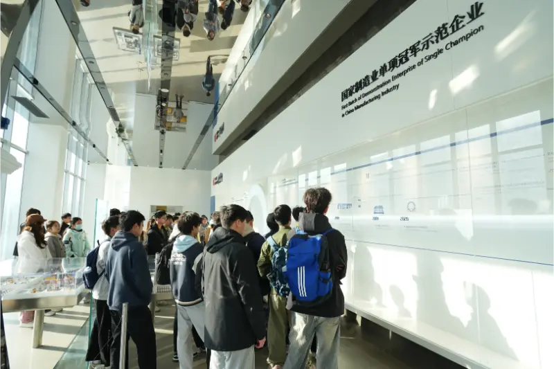 Вход в Quangong Machinery Co., Ltd.Выставочный зал истории развития, серия драгоценных старых фотографий и моделей исторического оборудования, рассказывают о пути компании от ее основания в 1979 году до наших дней. С самого начала своего существования как небольшого завода по производству муниципального машиностроения до нынешнего статуса эталона отрасли с зарубежными дочерними компаниями, такими как Zenith в Германии, и многочисленными наградами, в том числе вхождением в число первых «демонстрационных предприятий Китая по производству одного чемпиона», признанных Министерством промышленности и информационных технологий, траектория роста Quangong Machinery Co., Ltd. позволила преподавателям и студентам глубоко оценить преданность делу и инновации, лежащие в основе бизнес-философии «качество определяет ценность, профессионализм создает успех». В руководстве компании подробно описаны технологические прорывы и итерации продукта на каждом этапе разработки. Упоминая такие важные события, как разработка первой «полностью автоматической машины для производства многокомпонентного кирпича» в Китае в 2000 году и первой отечественной машины для производства сухих строительных смесей в 2004 году, аудитория часто выражала восхищение, давая студентам более четкое представление о траектории развития интеллектуальной обрабатывающей промышленности.