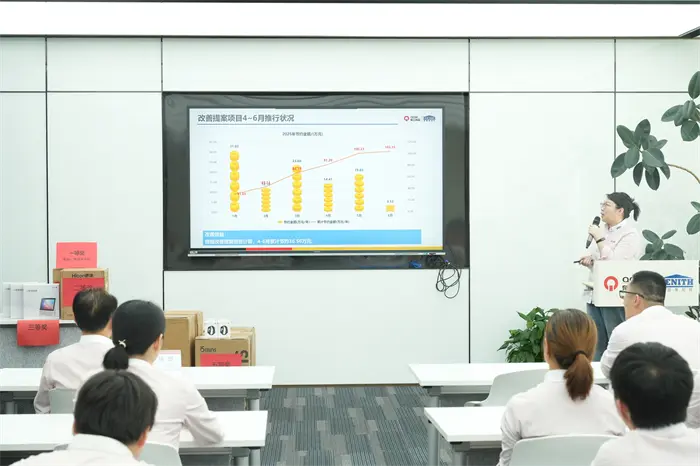 В ходе мероприятия Lean Office представил подробный отчет о предложениях по улучшению, представленных с апреля по июнь. Статистика показывает, что совокупная экономия с апреля по июнь достигла 365 600 юаней, при этом большинство предложений оценено на уровнях 5 и 6 и имеет большое количество участников. Эти предложения позволили компании сэкономить значительные трудозатраты и затраты. Это результат совместных усилий всех наших сотрудников и отражение постоянного стремления компании QGM Co., Ltd. к совершенству.