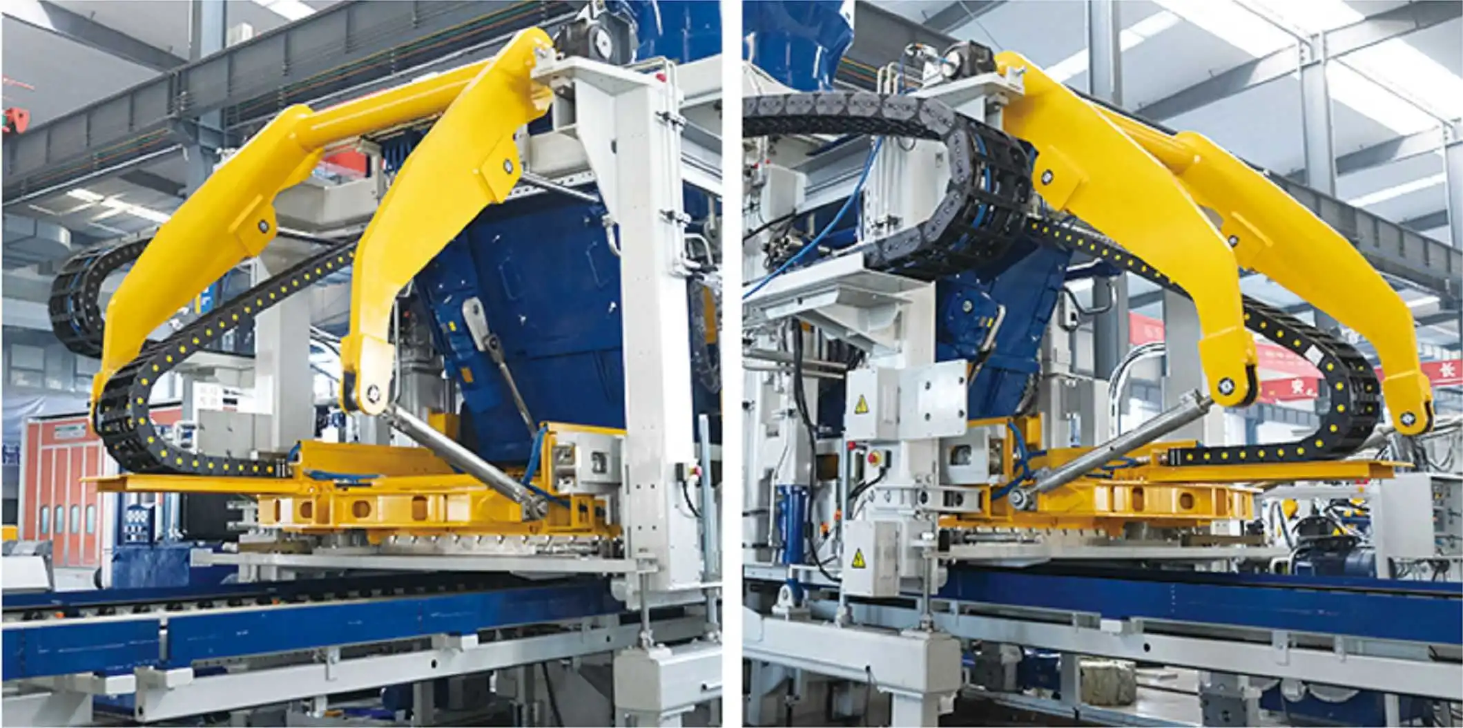 Основная рама представляет собой высокопрочную сварную конструкцию, разработанную по запатентованной технологии и сваренную из специальной стали. Вся рама подвергается старению и виброобработке, чтобы обеспечить высокое качество и высокую стабильность рамы. В качестве опоры и направляющей используются колонны большого диаметра с высокой точностью. При зачистке применяется механическая синхронизация, точное извлечение из формы и высокая консистенция готовой продукции.